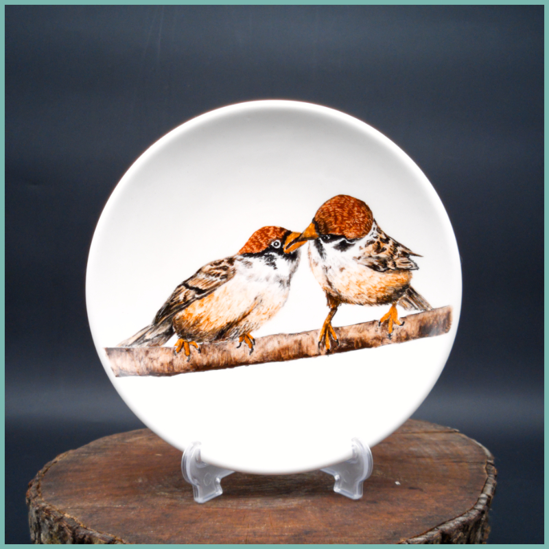 Tags Handarbeit, handbemalt, Keramik, Kollektion, medium, Rund, Spatzen, Teller, Vögel