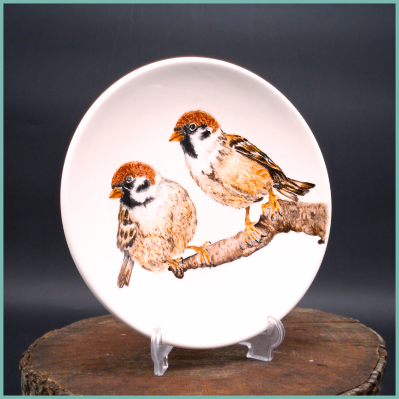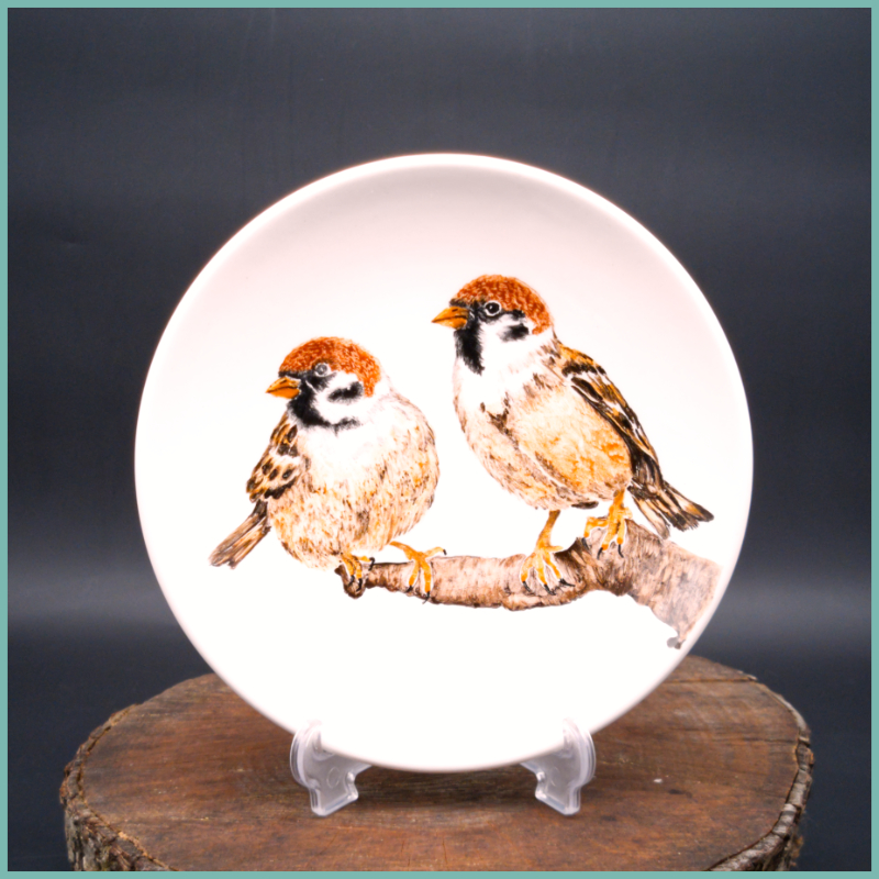 Tags Handarbeit, handbemalt, Keramik, Kollektion, medium, Rund, Spatzen, Teller, Vögel