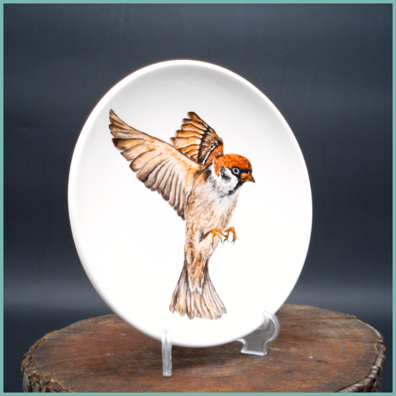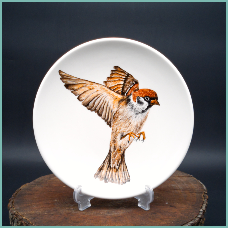 Tags Handarbeit, handbemalt, Keramik, Kollektion, medium, Rund, Spatzen, Teller, Vögel