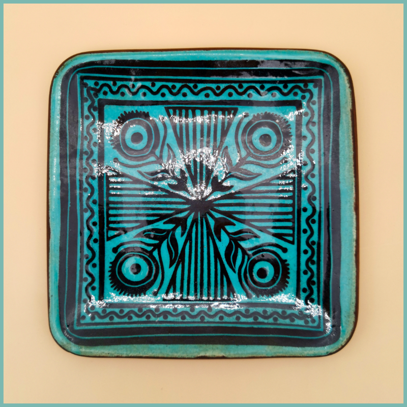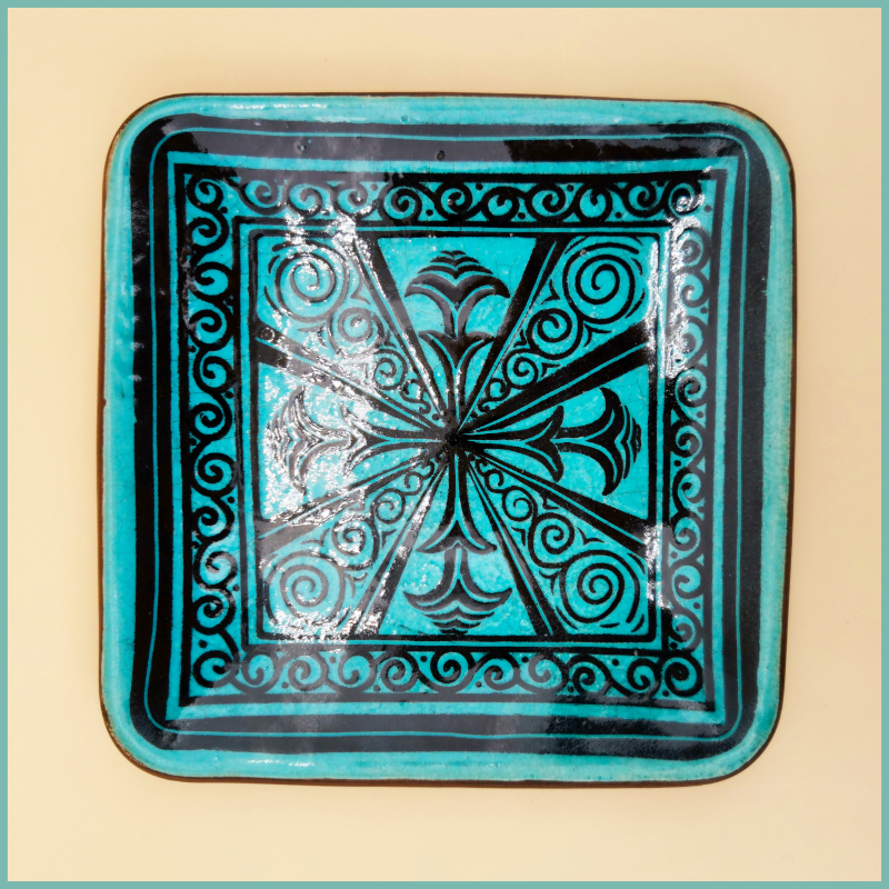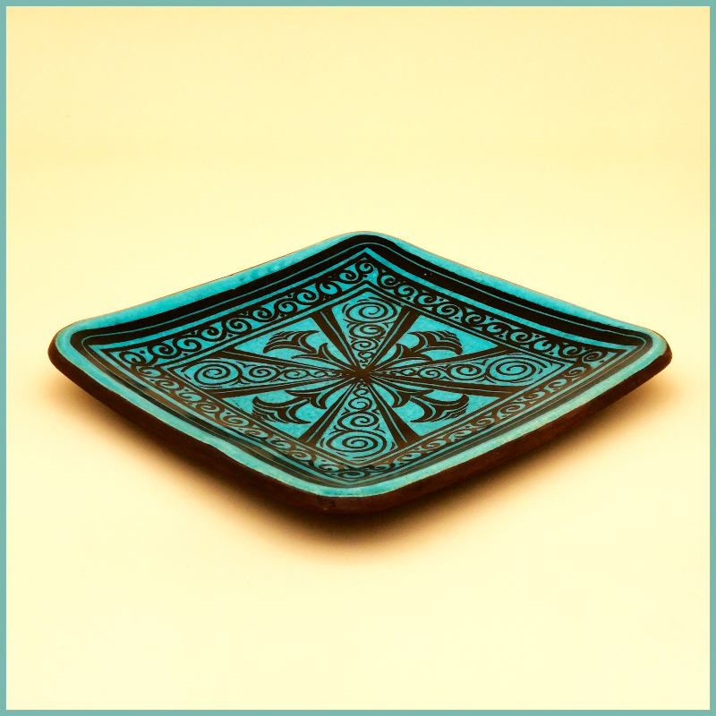 Tags Alte Keramik, Antik, Blau, Grün, handbemalt, Handgemacht, Quadratisch, rissig, rissiger Look, Teller, Töpferei, traditionell, Türkis