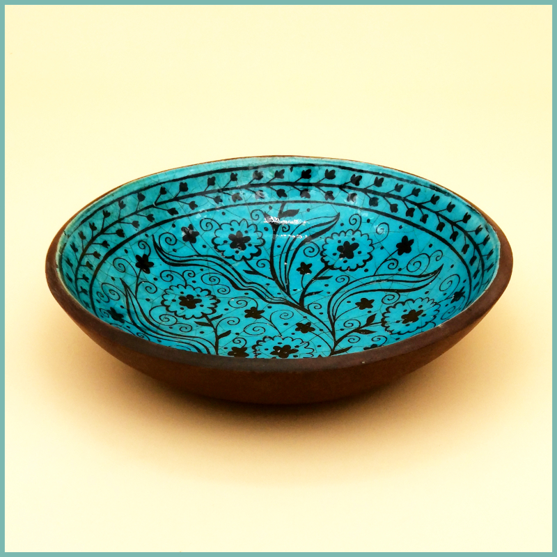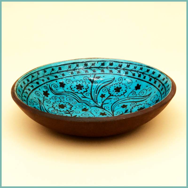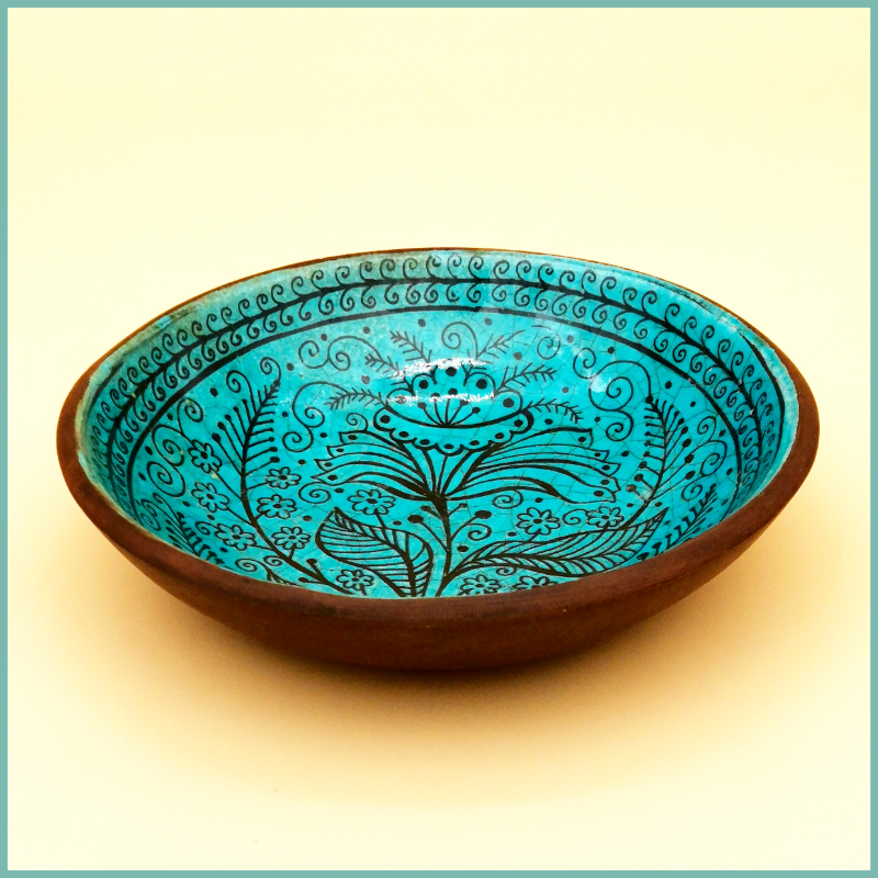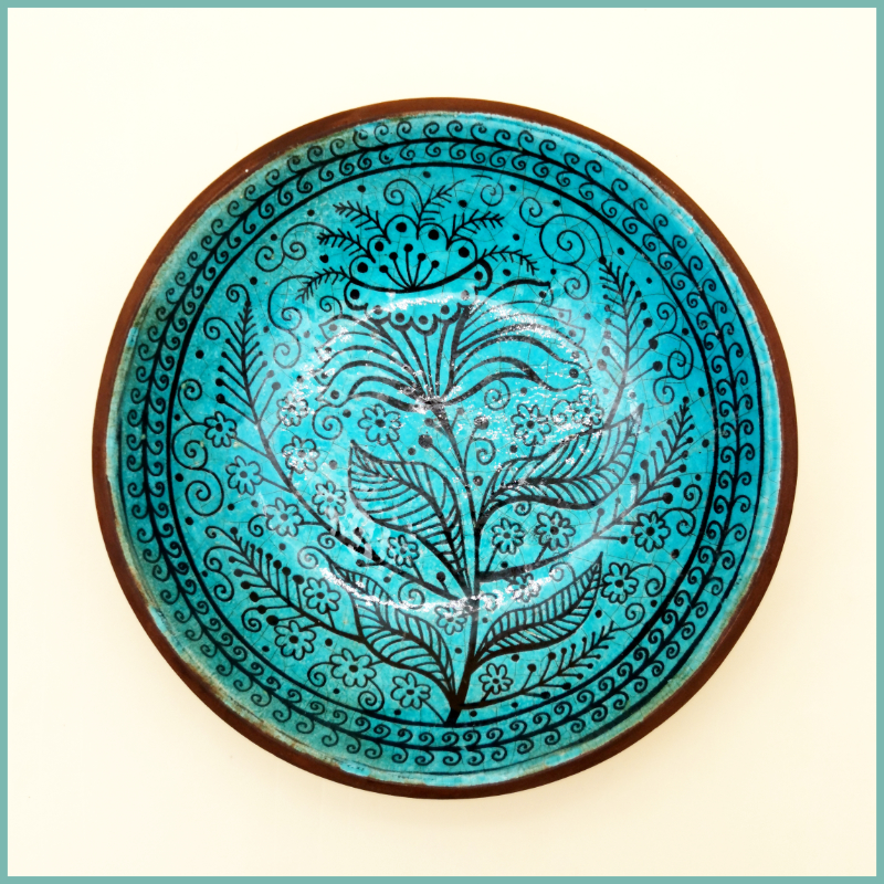 Im Atelier dieses Herstellers werden alle notwendigen Schritte zur Herstellung von Tellern und Schalen ausschließlich in Handarbeit verrichtet. Eine Ausnahme bildet hierbei natürlich der Brennprozess, welcher in einem Ofen unter sehr hohen Temperaturen stattfindet. Zu den Produkten dieses Ateliers gehören Keramikschalen mit traditionell rissiger, türkisfarbener Glasur. Der Brennprozess findet bei sehr hohen Temperaturen statt und bringt so eine einzigartige Qualität hervor. Die geschickt gewählte Kombination von Farben und Mustern dieser Schalen und Teller erinnern entfernt an alte Töpfereien. Die schwarzen, subglasierten Motive werden in Sgraffito-Methode aufgetragen und Innen-, sowie Rückseite der glasierten Schalen werden mit speziell wasserfester Farbe widerstandsfähig gemacht.