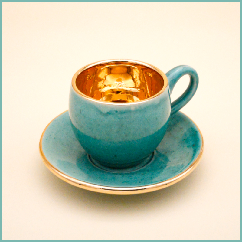 Sehr Kleine Tasse & Untertasse | Innenseite goldfarbig